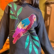 **Bird lamé print sweat【Black】**